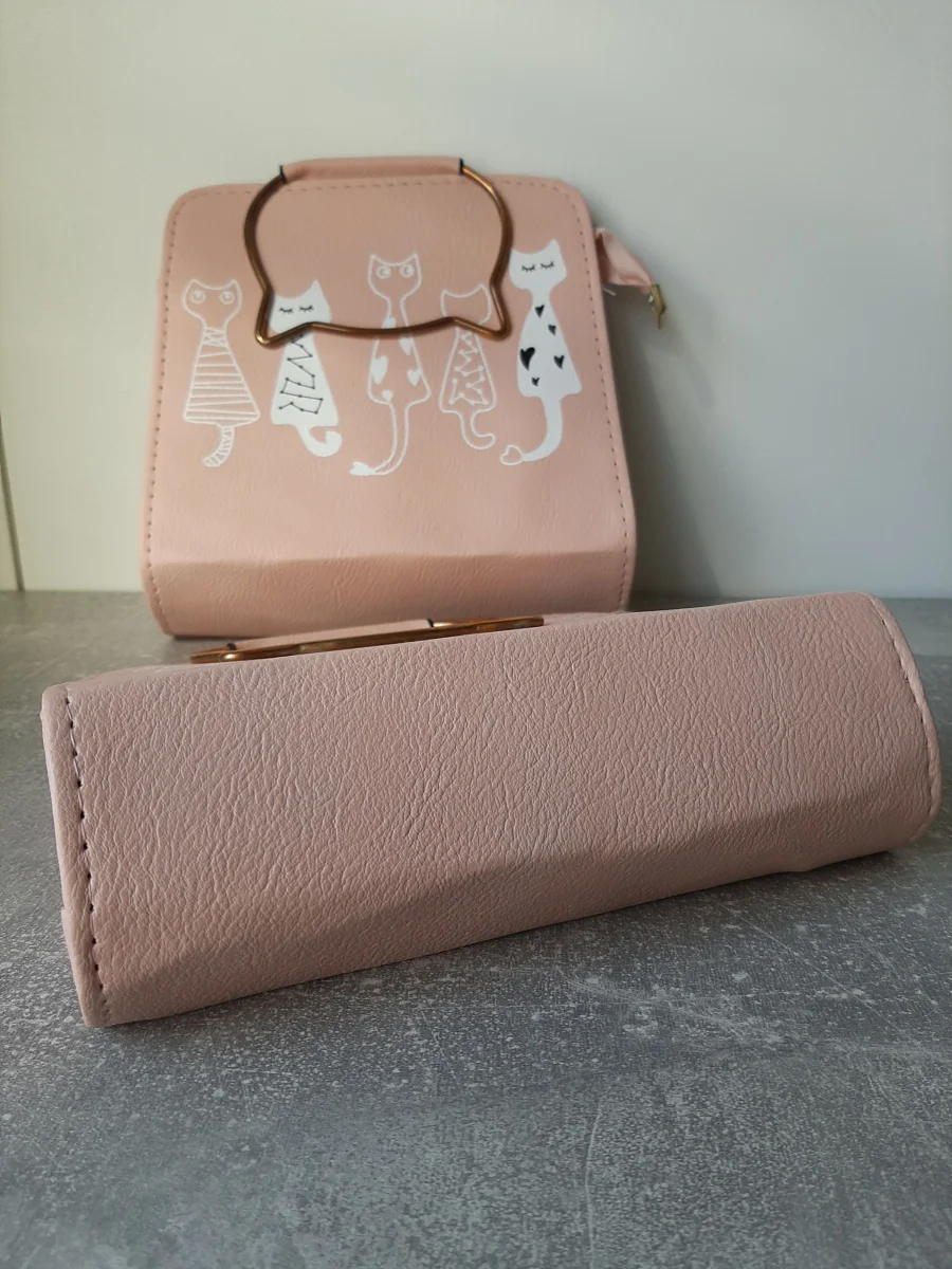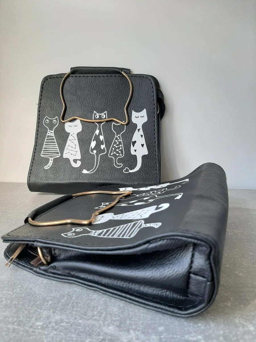 Deze leuke katten schoudertasjes in het Zwart en Roze verdienen een 2e kans.