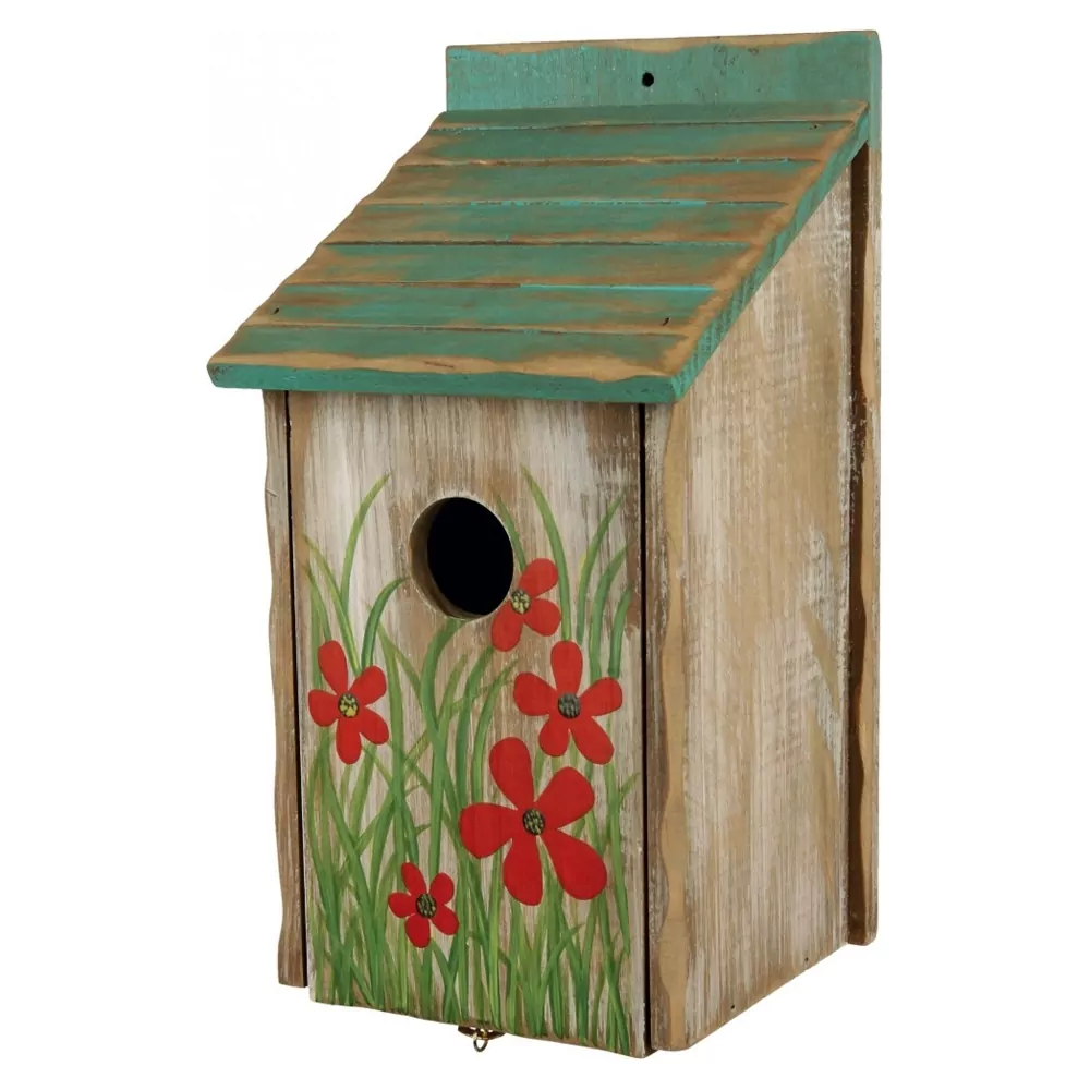 Als echte vogelliefhebber wilt u de vogels natuurlijk een handje helpen. En dat doet u zeker met een nestkast. In de lente start voor veel vogels het broedseizoen, dus dan gaan de vogels weer op zoek naar een geschikte nestplek. Na het broedseizoen zorgt uw vogelhuisje ervoor dat ze een plekje hebben om te schuilen voor het koude weer. Met dit leuke ontwerp hebben ze een mooi dakje boven het hoofd. De mooie bloemenschildering op het vogelhuisje maakt dit huisje een aanwinst voor elke tuin!