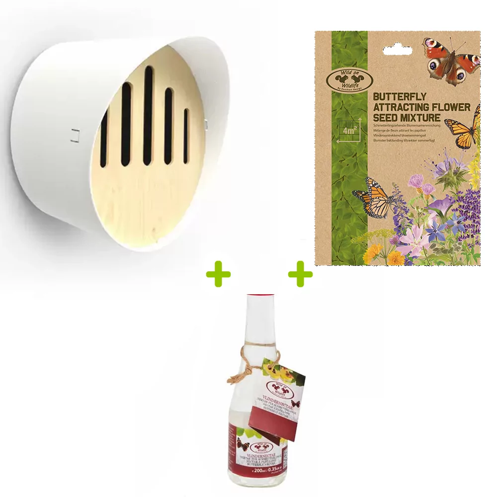 Wil je de vlinders een handje helpen? Met dit cadeaupakket kom je een heel eind! Met behulp van het vlinderbloemen zaadmengsel zorg je voor een bloemrijke tuin, en het vlinderhuis kunnen ze gebruiken om te schuilen of zich voort te planten. De vlindernectar zorgt ervoor dat je vlinders naar de tuin kunt lokken. Met dit cadeaupakket maak je de tuin een fijne plek voor de vlinder!