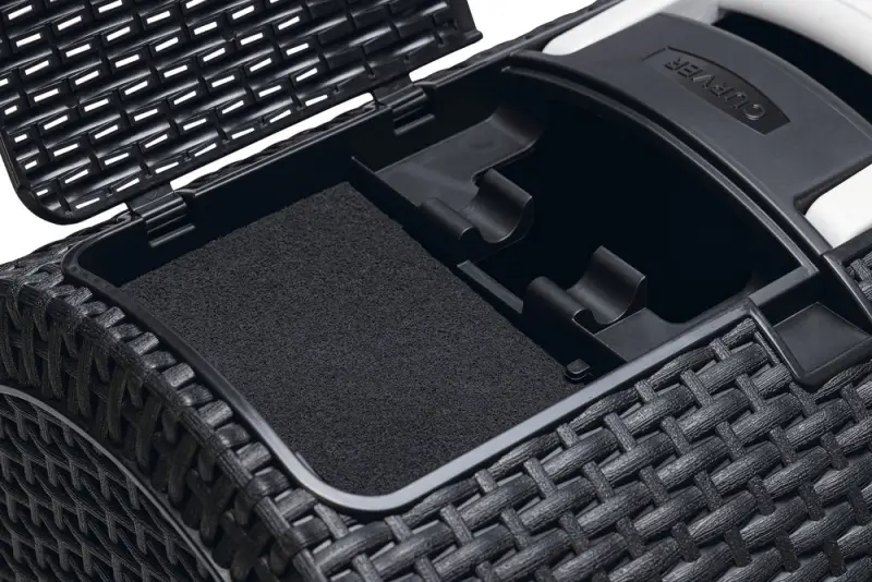 Deze Curver Kattenbak bestaat voor 95% uit gerecycled materiaal (huishoudelijk plastic afval en oude visnetten op de bodem van de zee (ocean waste)). De overige 5% zijn nieuwe grondstoffen. De hele kattenbak is op zijn beurt ook weer 100% recyclebaar. De kattenbak heeft een modieuze uitstraling doordat het een motief heeft van gevlochten rattan. De lade aan de voorkant heeft een plateau met gaatjes, waardoor de kat een groot deel van het kattenbakgrit achterlaat in de bak alvorens de kattenbak te verlaten. Door de uitschuifbare lade kan je in een oogopslag zien of de kattenbak aan verschoning toe is. Aan de bovenkant van de kattenbak bevindt zich een klepje waar de kattenbakschep opgeborgen kan worden. De Curver Kattenbak is zo mooi dat je nauwelijks ziet dat het een kattentoilet is.