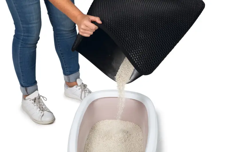 De Dubbele Kattenbakmat 60×50 cm — Zwart is de perfecte oplossing voor het gritprobleem! Als katteneigenaar zal het namelijk niet gek in de oren klinken dat jouw kat de kattenbakvulling af en toe meeneemt uit de kattenbak. Hierna kun je als baasje alles weer schoonmaken. Met deze kattenbakmat is dit niet meer nodig. Deze mat vangt namelijk al de kattenbakvulling op tussen de twee lagen, zodat het grit niet op de grond komt. Het enige wat je hoeft te doen is de mat bij de kattenbak neer te leggen. Het voordeel is bovendien ook dat het kattenbakvulling bespaart, wat je kunt hergebruiken. De mat heeft aan de onderkant antislip, zodat de mat niet weg kan glijden. Daarnaast is de mat onderhoudsvriendelijk, omdat je de mat gemakkelijk schoon kan maken door het af te spoelen met water.
