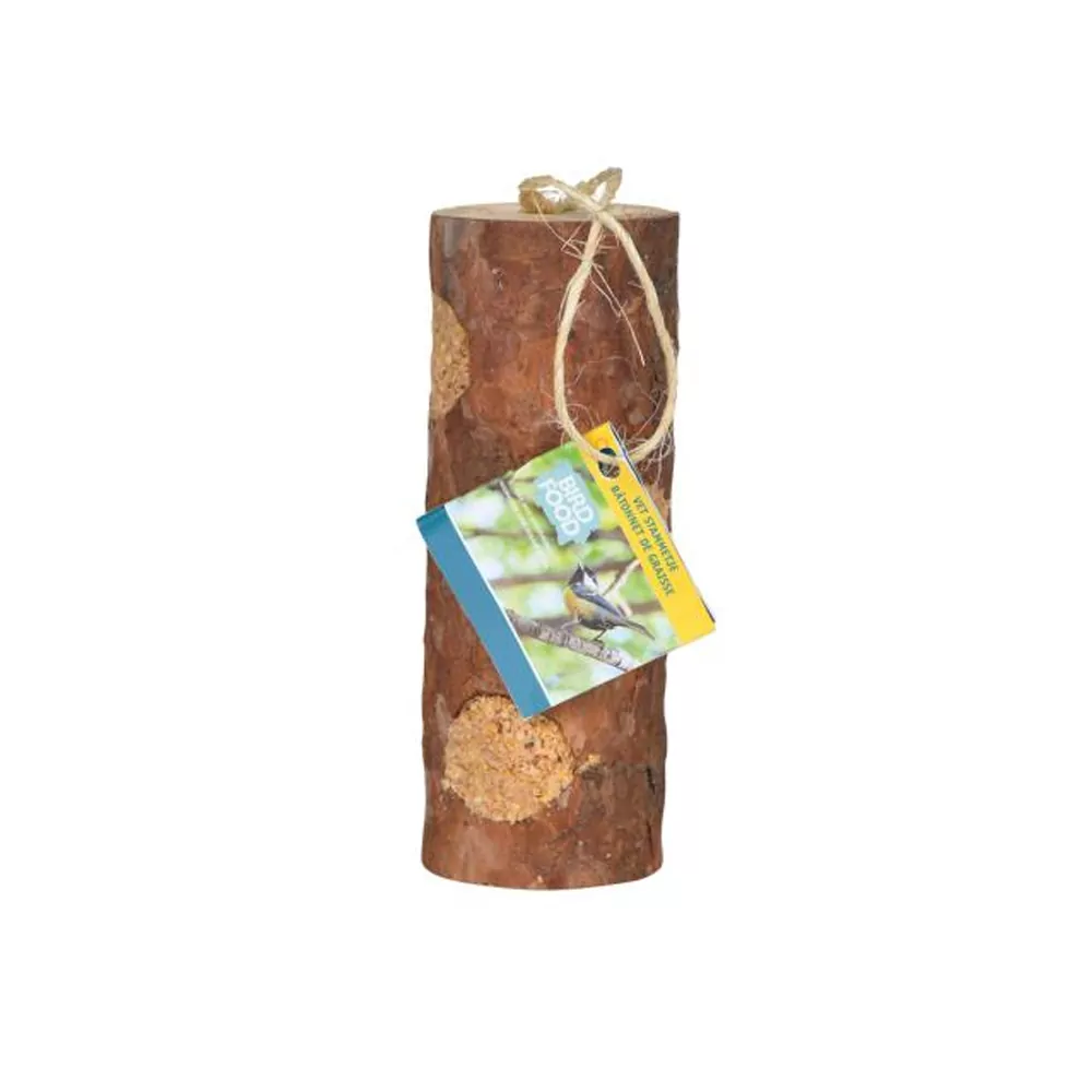 Dit leuke voederstammetje is gevuld met vet en zaden, en hierdoor een welkome voedselbron voor de vogeltjes in je tuin! Doordat het eten in een een stammetje zit gaat het goed op in de natuur. Als vogels het voer eruit gepikt hebben, kun je de stam opnieuw vullen. De stam heeft een afmeting van ca. 6 x 6 x 17 centimeter.